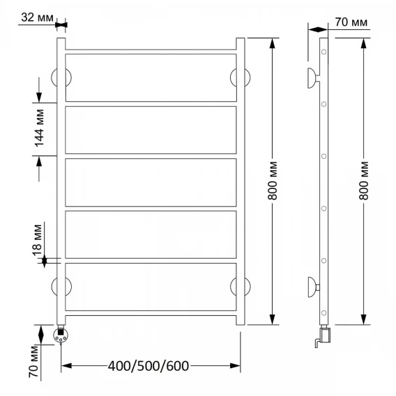 Полотенцесушитель электрический 870x632 ТЭН левый Secado Триада 1 4603777461157