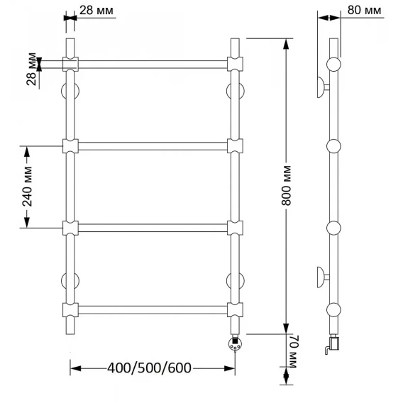 Полотенцесушитель электрический 770x532 ТЭН левый Secado Милан 2 4603777478254