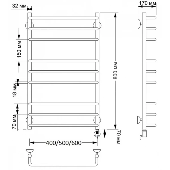 Полотенцесушитель электрический 870x632 ТЭН правый Secado Мерида 3 4603777464028