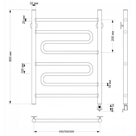 Полотенцесушитель электрический 670x632 ТЭН левый Secado Валенсия 4603777464493