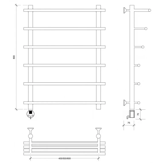 Полотенцесушитель электрический 870x700 ТЭН левый Secado Турин 6 4673739249482