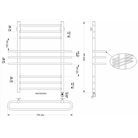 Полотенцесушитель электрический 870x532 ТЭН правый Secado Милан 4 4603777478940