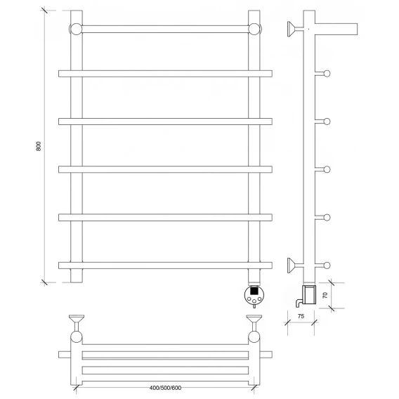 Полотенцесушитель электрический 670x500 ТЭН левый Secado Турин 4 4603759407371