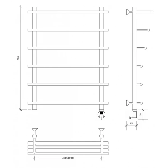 Полотенцесушитель электрический 870x700 ТЭН правый Secado Турин 6 4673739249604