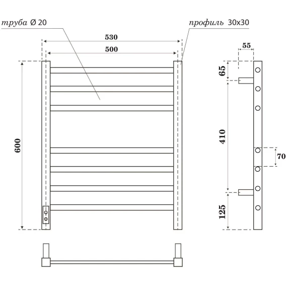 Полотенцесушитель электрический APEXTERMO Altair AL00065WM 600x530, диммер левый, белый матовый