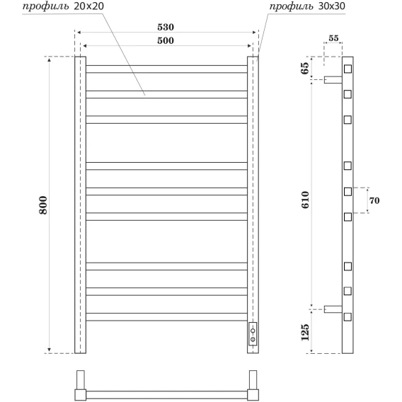 Полотенцесушитель электрический APEXTERMO Atlas AT00185BM 800x530, диммер правый, черный матовый