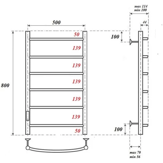 Полотенцесушитель электрический APEXTERMO Corona CR00085BM 800x532, диммер левый, черный матовый