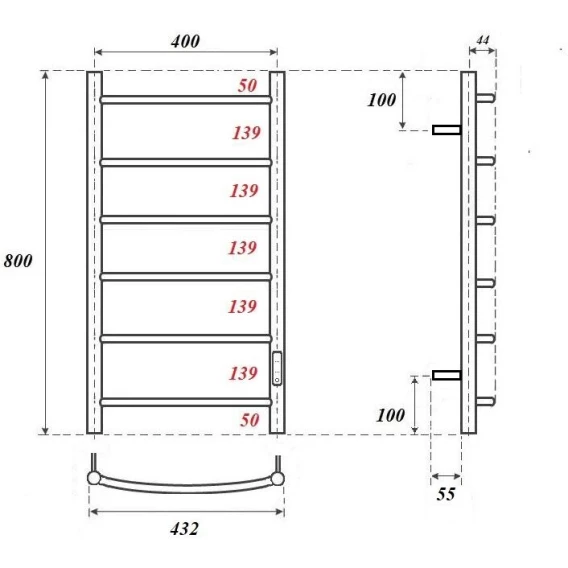 Полотенцесушитель электрический APEXTERMO Corona CR00184BM 800x432, диммер правый, черный матовый