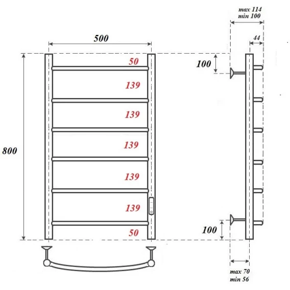 Полотенцесушитель электрический APEXTERMO Corona CR00185BM 800x532, диммер правый, черный матовый