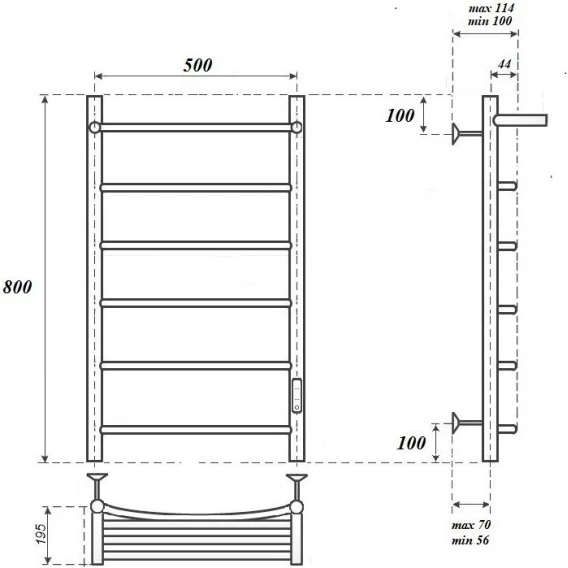 Полотенцесушитель электрический APEXTERMO Corona CR01185WM 800x532, диммер правый, белый матовый