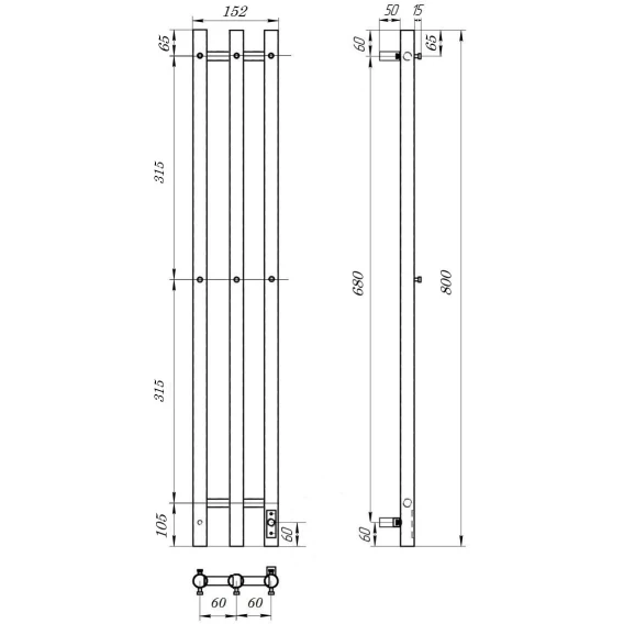 Полотенцесушитель электрический APEXTERMO Luna Light LN10182BL 800x152, диммер правый, черный матовый