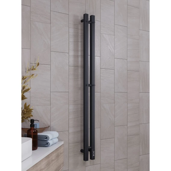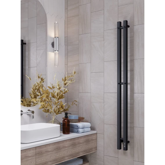 Полотенцесушитель электрический APEXTERMO Sirius SR10111BM 1090x110, диммер правый, черный матовый