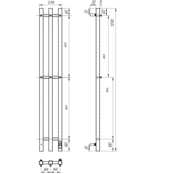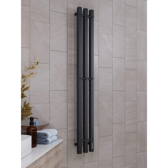 Полотенцесушитель электрический APEXTERMO Sirius SR10112BM 1090x150, диммер правый, черный матовый