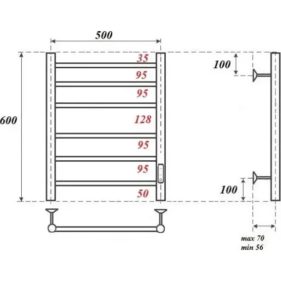 Полотенцесушитель электрический APEXTERMO Stella ST00165GM 600x532, диммер правый, графит матовый