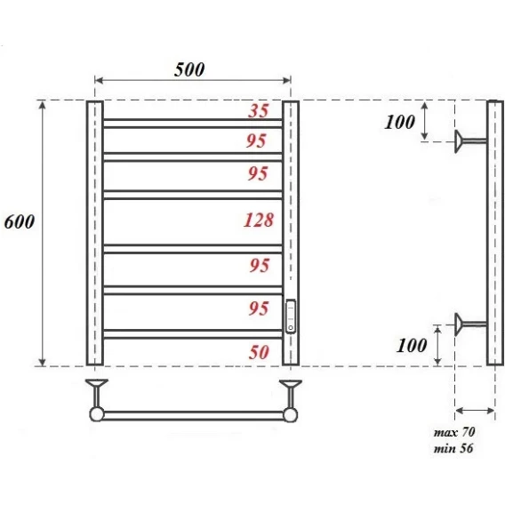 Полотенцесушитель электрический APEXTERMO Stella ST00165WM 600x532, диммер правый, белый матовый