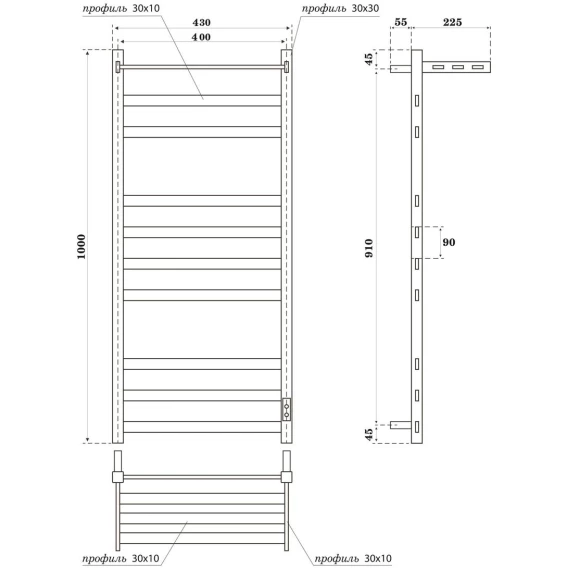 Полотенцесушитель электрический APEXTERMO Terra TR01104BM 1000x430, диммер правый, черный матовый