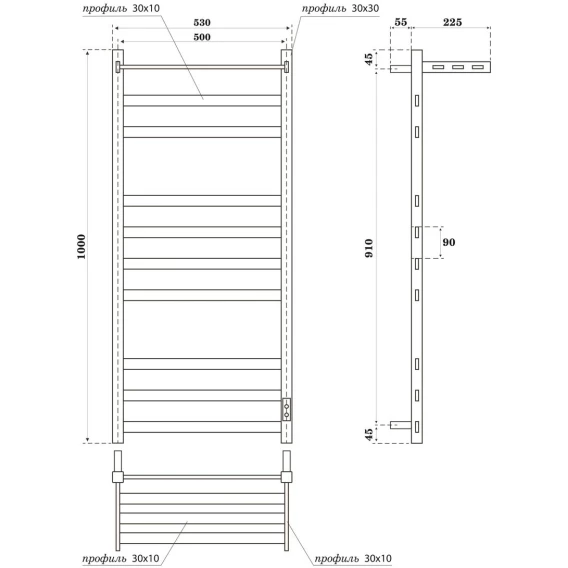 Полотенцесушитель электрический APEXTERMO Terra TR01105BM 1000x530, диммер правый, черный матовый
