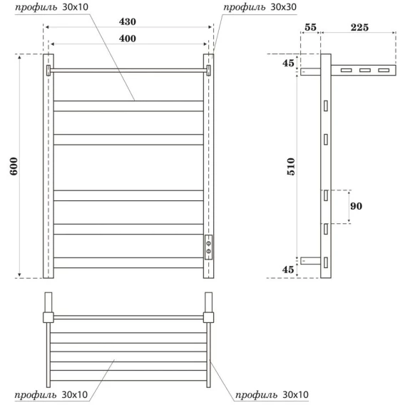 Полотенцесушитель электрический APEXTERMO Terra TR01164WM 600x430, диммер правый, белый матовый