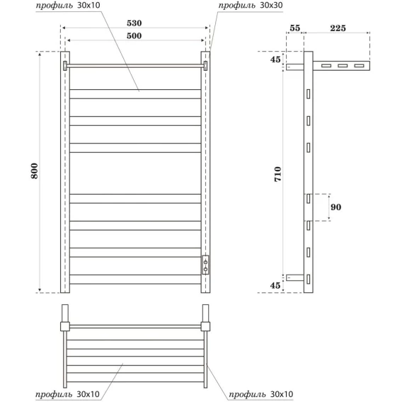 Полотенцесушитель электрический APEXTERMO Terra TR01185GM 800x530, диммер правый, графит матовый