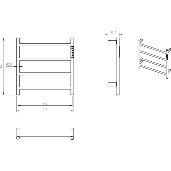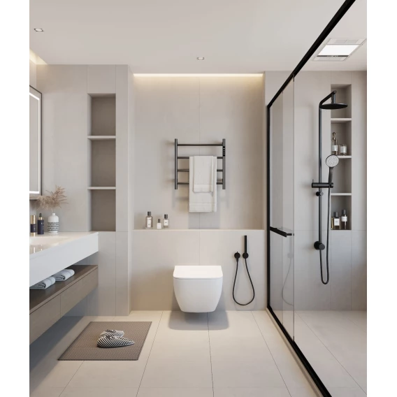 Полотенцесушитель электрический AQUAme AQM3124GM 474x475, диммер правый, оружейная сталь