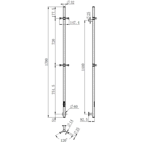 Полотенцесушитель электрический AQUAme AQM3151GM 1700x147,4, оружейная сталь