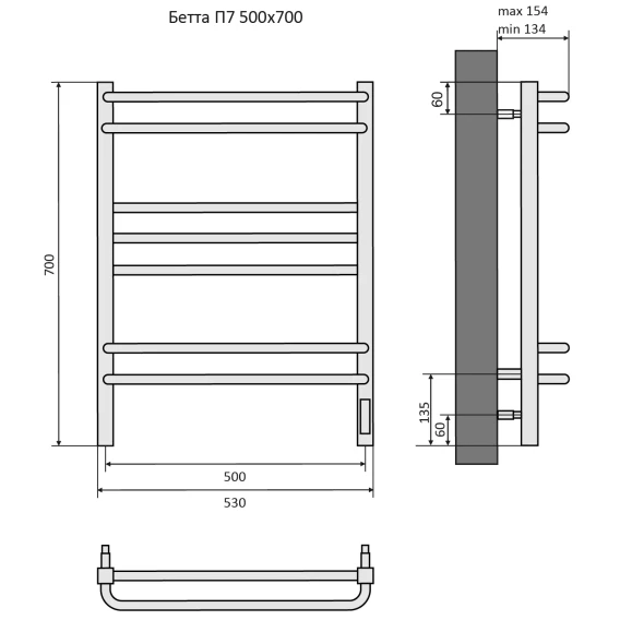 • Тип полотенцесушителя – электрический• Материал полотенцесушителя - нержавеющая сталь AISI 201• Форма полотенцесушителя – лесенка• Профиль ребер (мм) – круг Ø18• Профиль вертикальных стоек (мм) - квадрат 30х30• Количество секций – 7• Группировка 2-3-2• Тип теплоносителя - Сухой (ЕвроТЭН)• Площадь помещения (м.кв.) - 3• Тип подключения – нижнее• Подключение - скрытое к сети электропитания /или электропровод с вилкой• Расположение блока управления – справа• Электровыключатель – да• Терморегулятор – да• Количество температурных режимов на диммере – 3• Таймер - да• Количество режимов таймера - 3• Страна изготовления - Россия