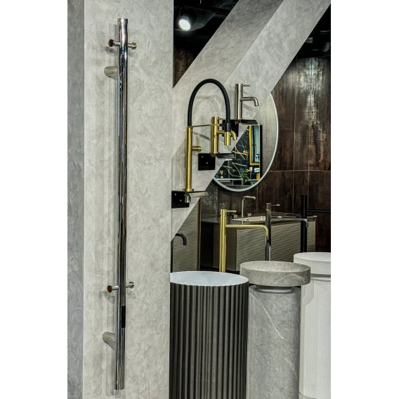 Новый электрический полотенцесушитель Boheme UNO выполнен из нержавеющей стали и дополнен рифлёным декором. Изящный минималистичный дизайн, диаметр 4,2см, высота 150см. Ну и конечно, все цвета.Напряжение 220-230 Вт4 крючка для полотенецСкрытое подключение мощностью 150 ВтСенсорное управлениеВремя нагрева 15-30 минутТемпература нагрева 45-60 С°Водонепроницаемость IP44