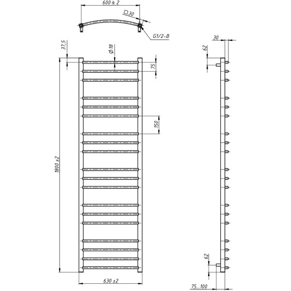 Полотенцесушитель водяной Grota Comfort 4650186715548 1500x530, хром