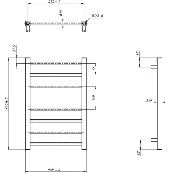 Полотенцесушитель водяной Grota Eco Classic 4607118210497 600x530, хром