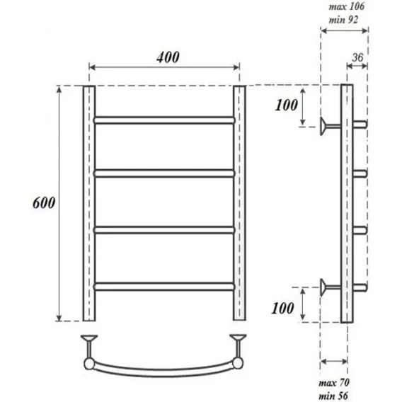 Полотенцесушитель электрический Point Афина П2 PN04146E 600x432, ТЭН левый/правый, хром