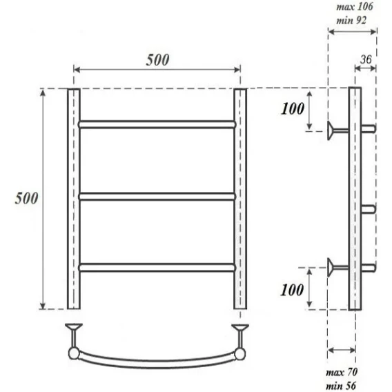 Полотенцесушитель электрический Point Афина П3 PN04155E 500x532, ТЭН левый/правый, хром