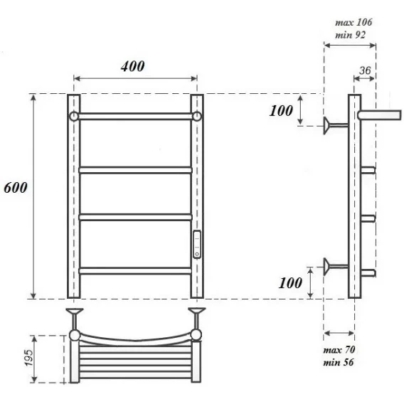 Полотенцесушитель электрический Point Афина П3 PN04846P 600x432, диммер правый, хром