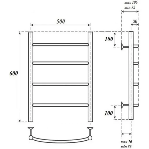 Полотенцесушитель электрический Point Афина П4 PN04156E 600x532, ТЭН левый/правый, хром
