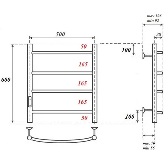 Полотенцесушитель электрический Point Афина П4 PN04756B 600x532, диммер левый, черный матовый