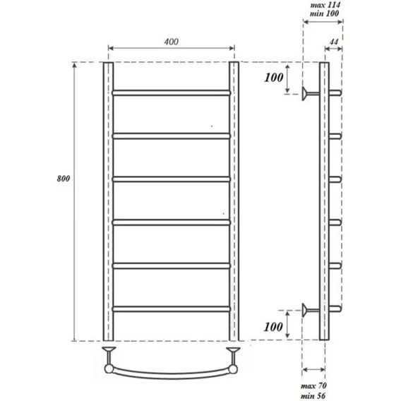 Полотенцесушитель электрический Point Афина П6 PN04148E 800x432, ТЭН левый/правый, хром