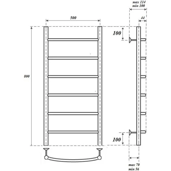 Полотенцесушитель электрический Point Афина П6 PN04158E 800x532, ТЭН левый/правый, хром