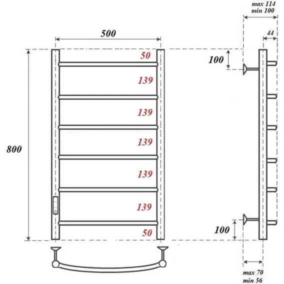Полотенцесушитель электрический Point Афина П6 PN04758B 800x532, диммер левый, черный матовый