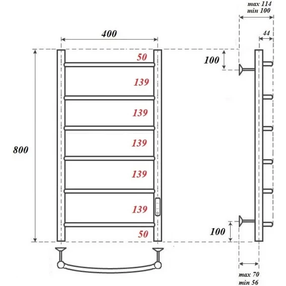 Полотенцесушитель электрический Point Афина П6 PN04848W 800x432, диммер правый, белый матовый