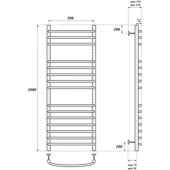 Полотенцесушитель электрический Point Альфа Премиум П15 PN05150SE 1000x532, ТЭН левый/правый, хром