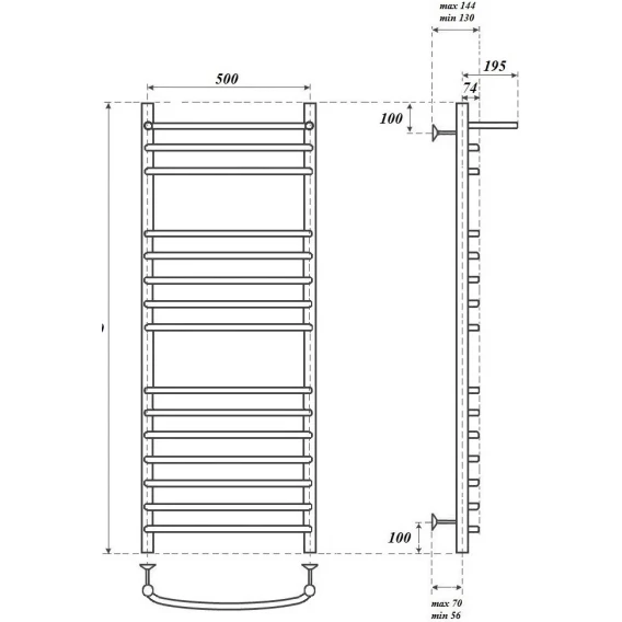 Полотенцесушитель - 1 шт, кронштейны для крепления к стене - 4 шт, кран Маевского - 1 шт, заглушка декоративная - 1 шт, Электротэн – 1 шт, паспорт/гарантийный талон - 1 шт