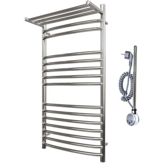 Полотенцесушитель электрический Point Альфа Премиум с полкой П14 PN05150SPE 1000x532, ТЭН левый/правый, хром