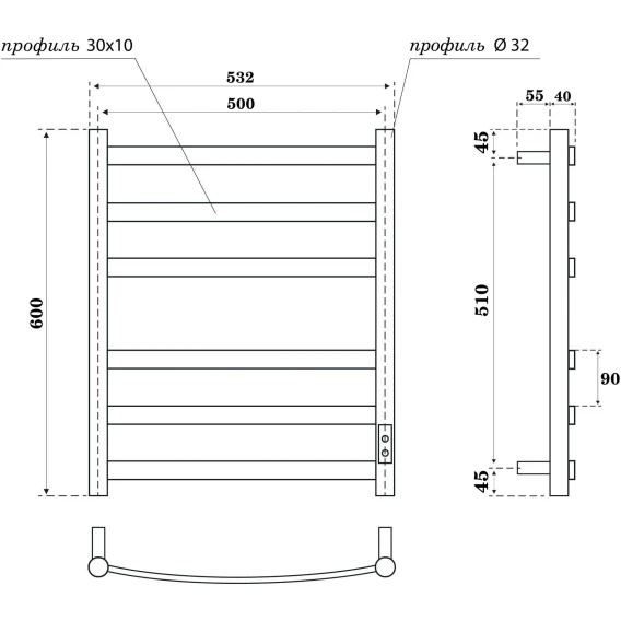 Полотенцесушитель водяной Secado Агата 2 4603777483456 800x632, белый матовый