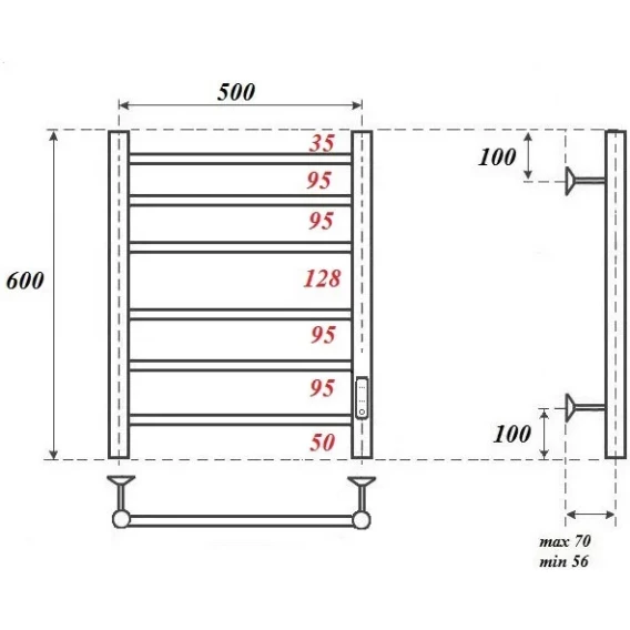 Полотенцесушитель электрический Point Аврора П6 PN10856 600x532, диммер правый, хром