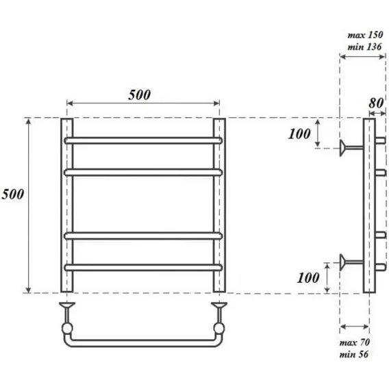 Полотенцесушитель электрический Point Нептун П4 PN09155E 500x532, ТЭН левый/правый, хром