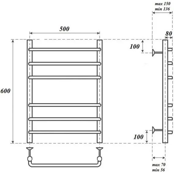 Полотенцесушитель электрический Point Нептун П6 PN09156E 600x532, ТЭН левый/правый, хром