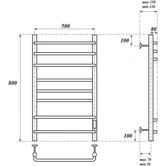 Полотенцесушитель - 1 шт, кронштейны для крепления к стене - 3 шт, сетевой кабель - 1 шт, комплект скрытого подключения - 1 шт, паспорт/гарантийный талон - 1 шт