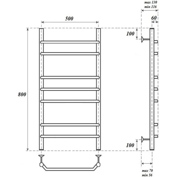 Полотенцесушитель электрический Point Венера П7 PN07158E 800x532, ТЭН левый/правый, хром