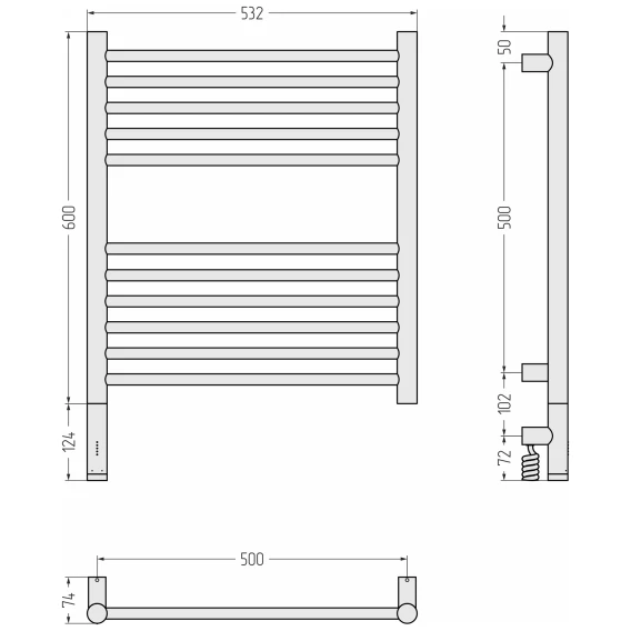 Полотенцесушитель электрический 670x530 ТЭН правый Secado Корато 1 4603777470890