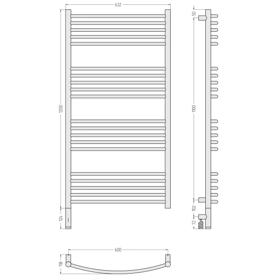 Полотенцесушитель электрический 1070x432 ТЭН правый Secado Мерида 3 4603777453084