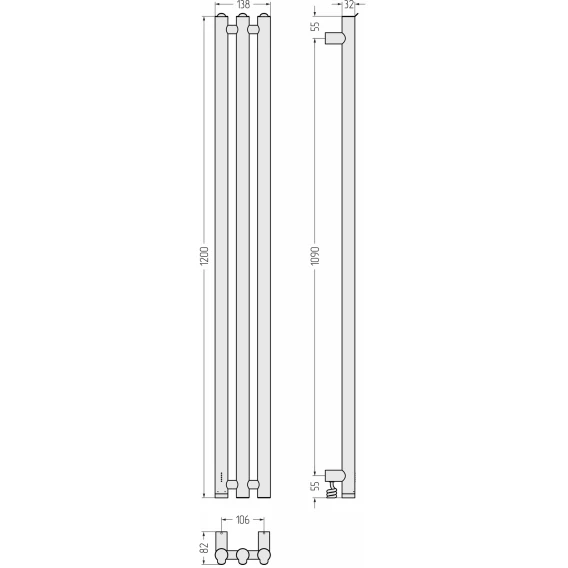 Полотенцесушитель электрический Сунержа Терция 4.0 31-0884-1206 1200x106, МЭМ левый, черный матовый